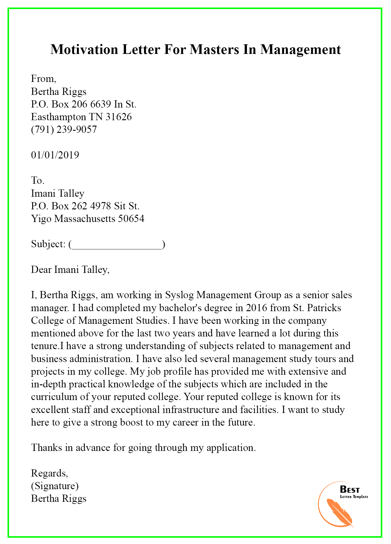 Sample Motivation Letter Template for Masters - PDF …